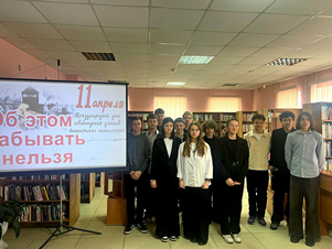 К Международному дню освобождения узников фашистских концлагерей в центральной районной библиотеке им. И.Чигринова для учащихся 8 класса ГУО «Средняя школа №1 г.Костюковичи» прошел час памяти «Об этом забывать нельзя». Ведущие рассказали, почему Международный день освобождения узников фашистских концлагерей отмечается именно 11 апреля. Ребята узнали о лагерях смерти, которые действовали на территории Германии и на оккупированных ею европейских странах, таких как Бухенвальд, Дахау, Освенцим, Саласпилс и др., а также о крупнейших лагерях смерти, действующих на территории Беларуси: Тростенец, Озаричи, Красный Берег. Участники мероприятия узнали о том, в каких условиях доводилось жить узникам, об ужасах, которые они переживали, ежедневно испытывая голод, подвергаясь истязаниям, преступным медицинским экспериментам, погибая в ходе изнурительных работ. Ребята просмотрели видеоролик «Тростенец, Озаричи: лагеря смерти на территории Беларуси во время Великой Отечественной войны». В ходе мероприятия учащиеся познакомились с книгами о геноциде белорусского народа. Чудовищные факты и цифры жертв лагерей смерти не оставили ребят равнодушными. В завершение часа памяти, отдавая дань уважения погибшим, почтили их память минутой молчания.