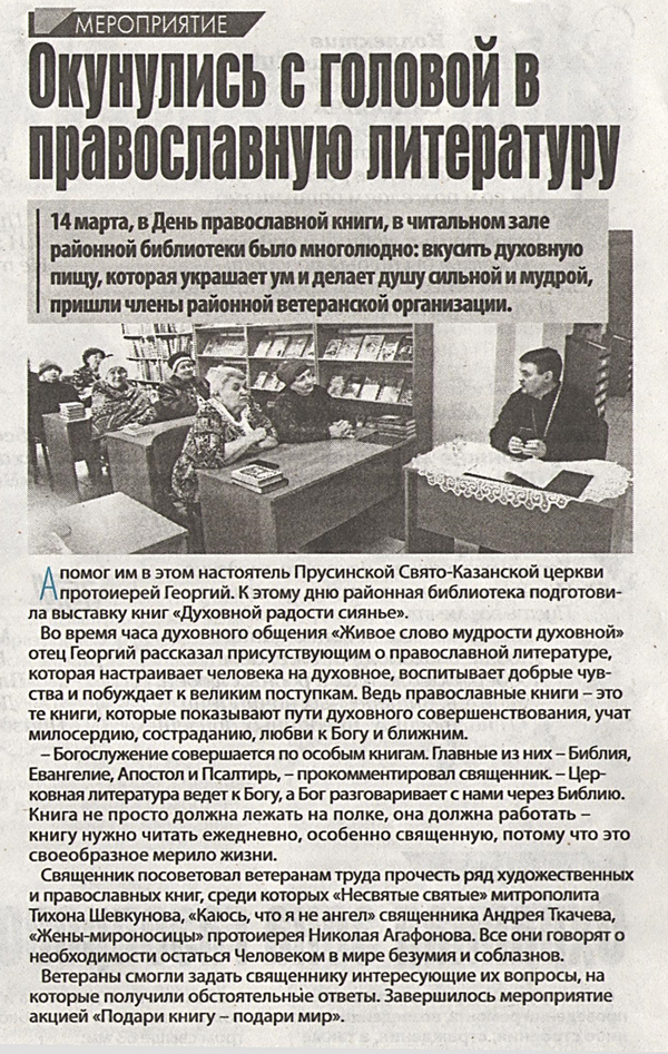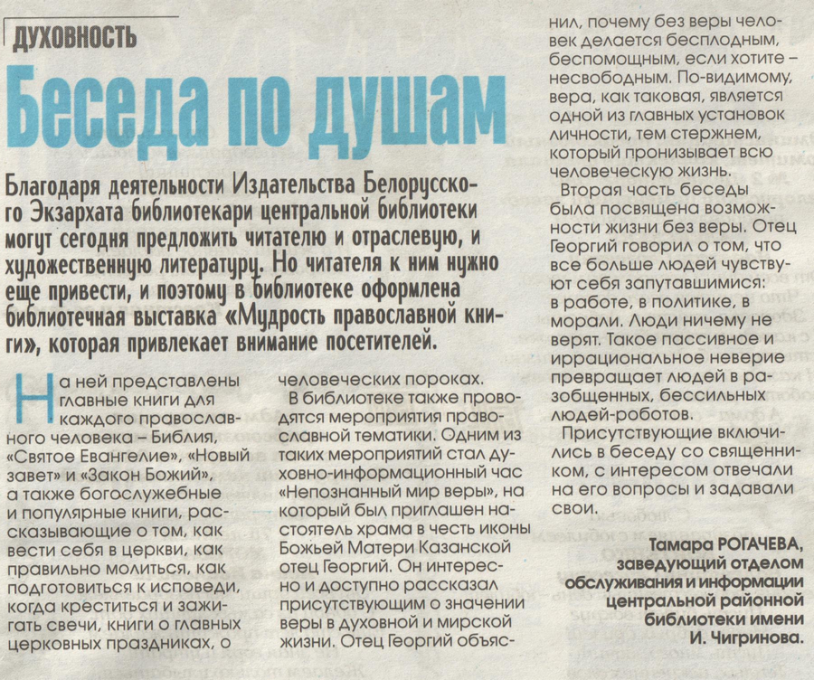 В центральной районной библиотеке им. И. Чигринова прошел православный час «Где живёт доброта».