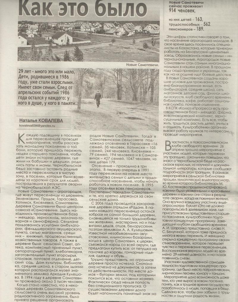 4. Ковалёва, Н. Белынковичи / Наталья Ковалёва // Голас Касцюкоўшчыны. — 2013. — 12 января. — С. 9.