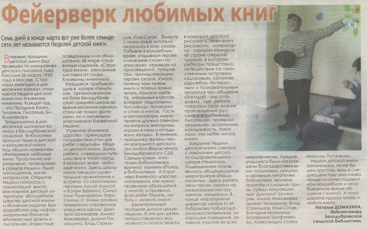 10. Толкачева, Н. Здравствуй, Книжкина неделя! / Наталья Толкачева // Голас Касцюкоўшчыны. — 2019. — 30 сакавіка. — С 12.