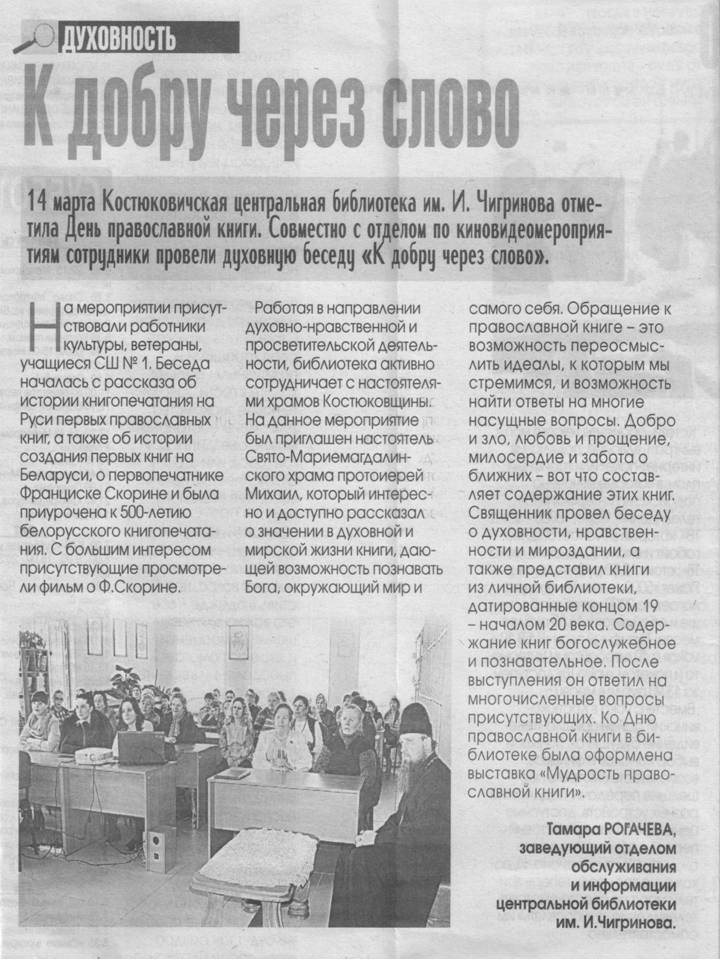 25. Сыромолотова, Ю. Ознакомлен – значит вооружен / Ю. Сыромолотова // Голас Касцюкоўшчыны. — 2014. — 2 апреля. — С. 6.