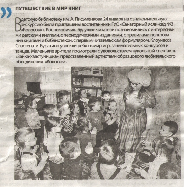 13. Торжественное открытие Недели детской и юношеской книги «Путешествие по волшебной стране» состоялось в Костюковичах [Электронный ресурс] // Голас Касцюкоўшчыны : сайт. — Режим доступа: https://golk.by/torzhestvennoe-otkrytie-nedeli-detskoj-i-junosheskoj-knigi-puteshestvie-po-volshebnoj-strane-sostojalos-v-kostjukovichah.html. — Дата доступа: 30.03.2022.