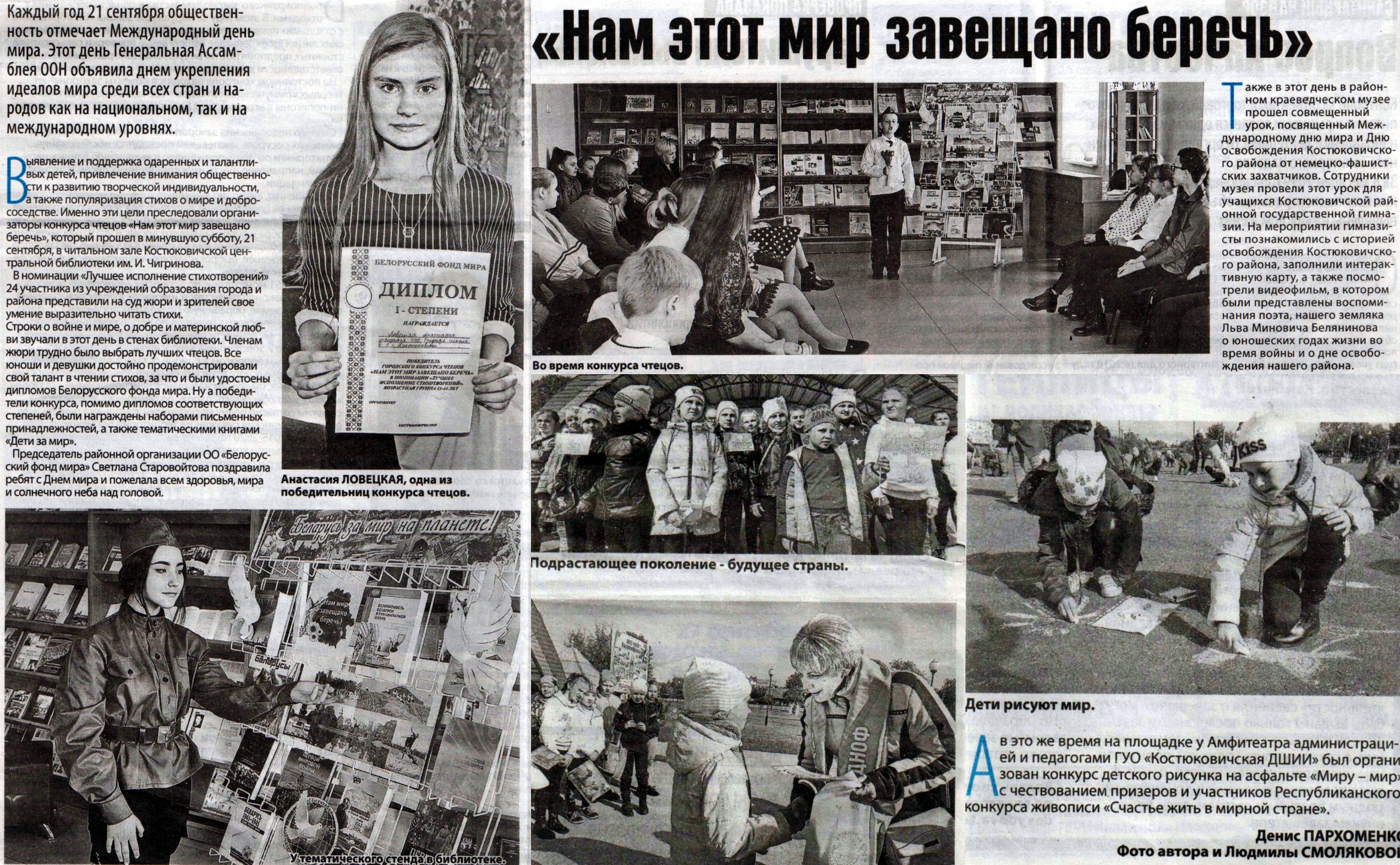 5. Пархоменко, Д. Нам этот мир завещано беречь / Денис Пархоменко // Голас Касцюкоўшчыны. — 2019. — 25 верасня. — С. 4.