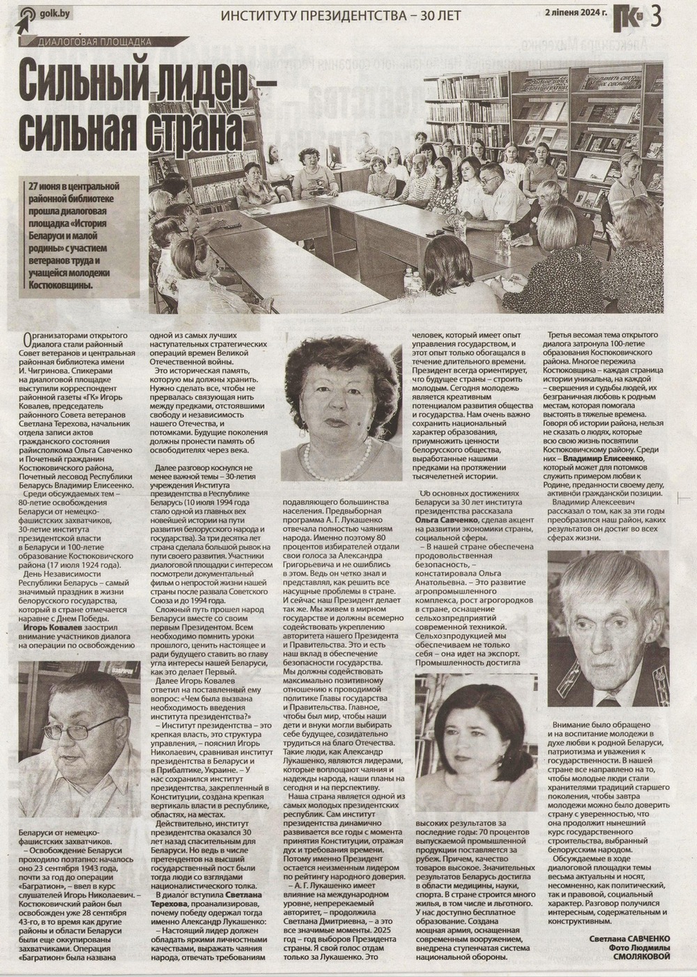 5. Ковалев, И. Сто славных страниц / Игорь Ковалев ; фото Людмилы Смоляковой // Голас Касцюкоўшчыны. — 2024. — 2 лістапада. — С. 12.