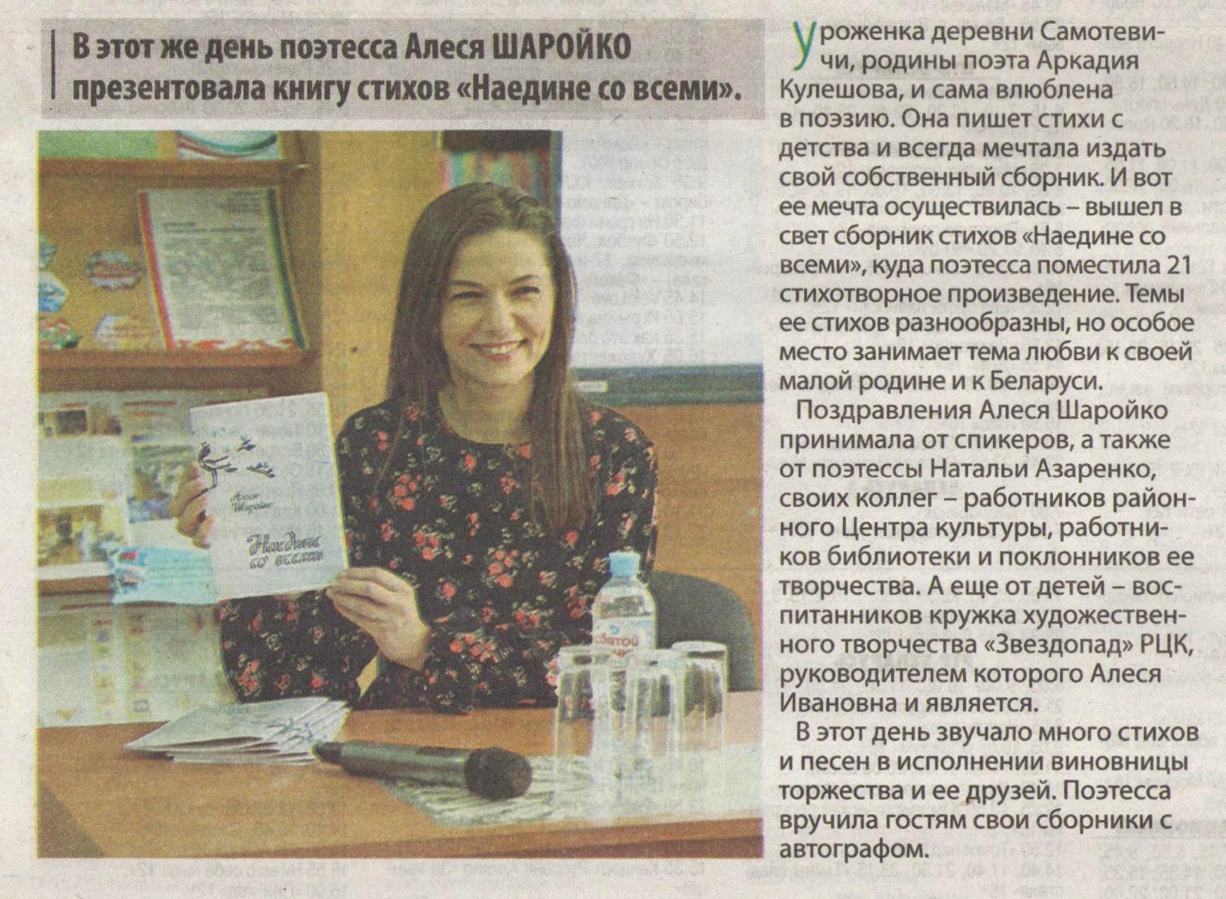 5. Дробышава, Н. Адчулі слова прыгажосць / Наталья Дробышева // Могилёвская правда. — 2013. — 4 января. — С. 14.