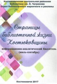 Страницы библиотечной жизни Костюковщины: информационно-аналитический бюллетень (июль-сентябрь) / Костюковичская центральная районная библиотека имени И. Чигринова , Отдел маркетинга и библиотечной рекламы ; [составитель С.Н. Федосенко ; ответственный за выпуск А.Е. Мартыненко]. - Костюковичи : Центральная библиотека имени И. Чигринова, 2017.— 28 с.