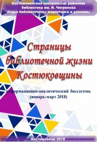 Страницы библиотечной жизни Костюковщины: информационно-аналитический бюллетень (январь-март) / Государственное учреждение культуры “Библиотечная сеть Костюковичского района”, Отдел маркетинга и библиотечной рекламы ; [составитель С.Н. Федосенко ; ответственный за выпуск А.Е. Мартыненко]. - Костюковичи : Центральная библиотека имени И. Чигринова, 2018.— 36 с.