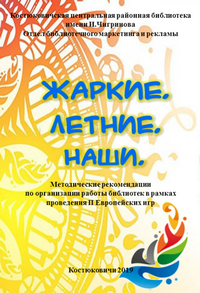 Жаркие. Летние. Наши. [Текст] : методические рекомендации по организации работы библиотек в рамках проведения II Европейских игр / Костюковичская центральная районная библиотека имени И. Чигринова, Отдел библиотечного маркетинга и рекламы ; [составитель С. Н. Федосенко ; ответственный за выпуск А. Е. Мартыненко]. – Костюковичи : Костюковичская центральная районная библиотека имени И. Чигринова, 2019. – с.21 – Бесплатно. – 15 экз.